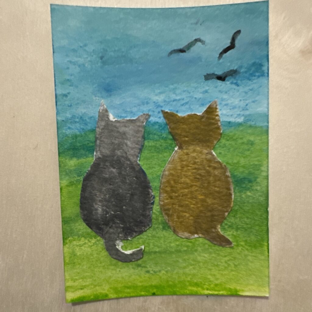 The cat-themed mini artworks are inspired by two indoor/outdoor cats: Nala and Smoki. You can follow them on Instagram @Smoki_Nala. If you like to inquire about any of my ACEOs, click the link or email me with questions.